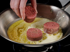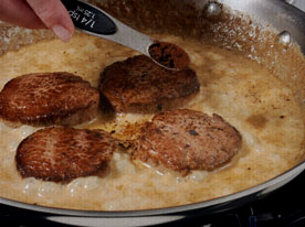 Tempere os filés com pimenta do reino. Frite-os na manteiga numa frigideira até ficar dourado. Retire e reserve.