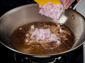 No que sobrou da frigideira frite a cebola até ficar dourada.