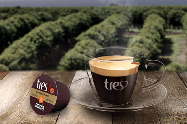 Depois de lançar a nova máquina MIMO, a solução multibebidas TRES® traz ao mercado nesse fim de ano mais uma novidade: o Espresso Cerrado Mineiro. A cápsula, que é uma edição limitada, tem grãos 100% Arábica e foi especialmente produzida com as sacas de café vencedoras do II Prêmio do Cerrado Mineiro, da safra de 2014/2015.