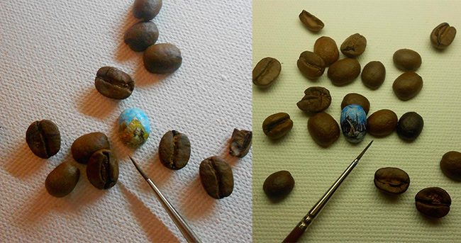 Já imaginou o grão de café (e castanhas, feijões e amendoins) como tela para uma obra de arte? Nós também não… Até conhecermos o trabalho do turco Hasan Kale! Ele usa ingredientes bem pequenos para criar incríveis desenhos, como paisagens e retratos.
