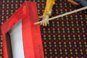 Perfure a parte superior do “palco” com os palitos. Eles servirão como corpo e sustentação dos personagens.