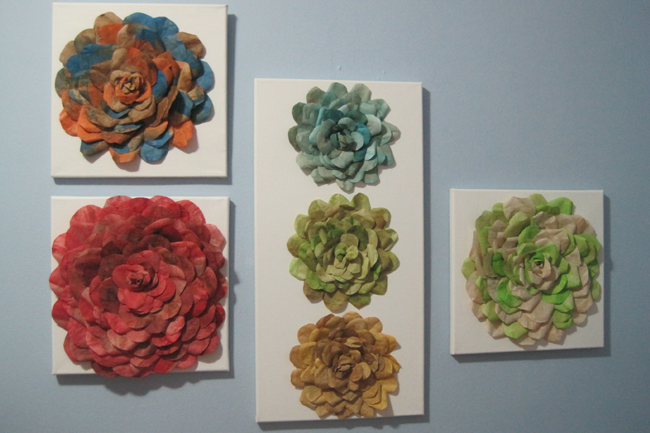 O trabalho é feito com o filtro de café natural e também com cores. “Ele pode ser utilizado de diferentes maneiras, como na montagem de um abajur ou em quadros com flores, para pendurar na parede”, explica.