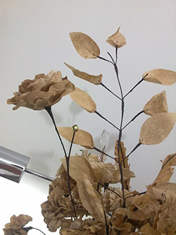 Os trabalhos dela começaram por dois motivos: necessidade financeira e como terapia ocupacional. Adicione café à fórmula e o resultado é sucesso. Nas mãos da artesã e contadora Tânia Regina Coelho, aqueles filtros usados, que você normalmente joga no lixo após o uso, viram lindas flores cafeinadas: “Além disso, também decoro portas, paredes, painéis para suporte de TVs, luminárias, quadrinhos e outros objetos”, explica.