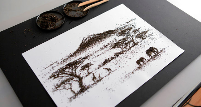 Nosso repertório de arte feita com chá está crescendo aqui no Mexido de Ideias! Mas confessamos termos nos impressionado em especial com este trabalho. O artista e designer publicitário russo Andrew Gorkovenko é o responsável por criar as incríveis paisagens históricas feitas com folhas secas da Camellia sinensis. Locais como o Quênia e a Muralha da China são algumas das inspirações para as telas.