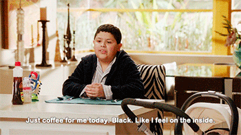 Meu pedido de café em época de provas na escola ou fechamento de relatórios na agência. (Tradução: Somente café para mim hoje. Preto. Assim como eu me sinto por dentro)