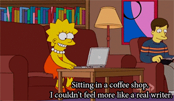 Quem nunca se sentiu assim ao entrar em uma cafeteria com um laptop? (Tradução: Sentar em um cafeteria. Não podia me sentir mais como uma verdadeira escritora)
