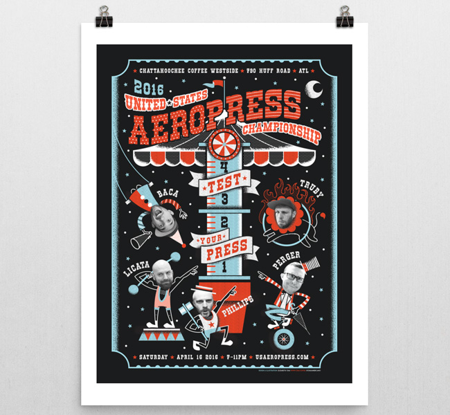 Representando o Noroeste do país, a etapa realizada em Portland ganhou um pôster minimalista que lembra as plantações de café, assim como o formato da Aeropress: