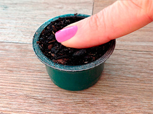 Limpe bem a cápsula e em seguida coloque a terra. Pressione com os dedos para firmá-la.