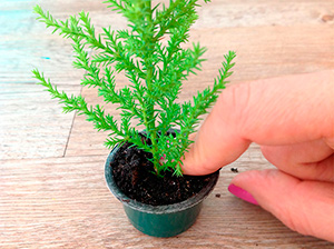 Em seguida introduza o caule da planta e pressione novamente com os dedos para firmar o ramo. Se necessário, coloque mais terra para deixar a planta firme.