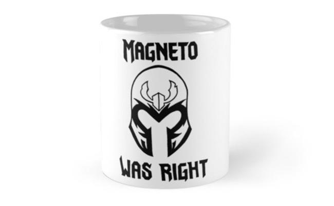 Magneto (X-Men) – Magneto é um vilão adorado, apesar de querer destruir os Homo sapiens. O mutante possui poderes sobre metais e usa um capacete para evitar ataques psiônicos. A caneca acima estampa uma das frases mais conhecidas dos fãs de X-Men: “Magneto estava certo”. A porcelana custa US$ 16,25 aqui.
