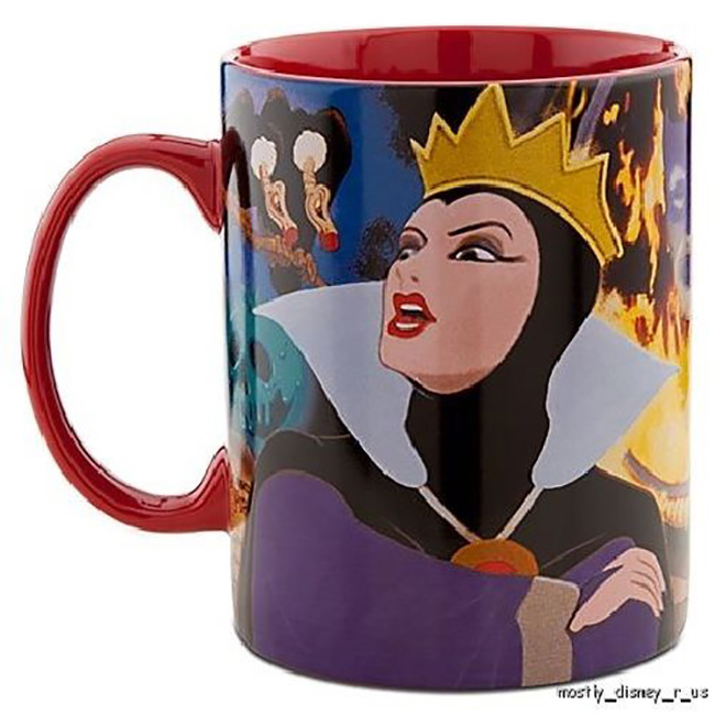 Rainha Má (Branca de Neve) – Ainda nos contos de fadas, quem não se lembra da madrasta da Branca de Neve, que manda um caçador matar e arrancar o coração da princesa? Apesar da maldade e dos disfarces tentando assassinar a moça, a vilã tem seus admiradores. A caneca está disponível no Ebay por US$ 29,75.