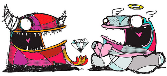 Imagine ter cerca de 25 artistas decorando sua caneca. A Ilustríssima faz isso para você! Desenhos, imagens e arte de diversos estilos podem ser aplicados na porcelana de xícaras e canecas. Há obras feitas digitalmente, cheias de pixels, a mão, com caneca e lápis, coloridas, pretas e brancas e diversas outras com técnicas e estilos diferentes. Ou seja, tem para todos os gostos!