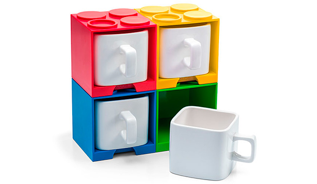 Canecas quadradas: Aqui a palavra é organização! Essas canecas comportam 240 ml, têm um design bacana e, o mais legal: podem ser guardadas em pequenas caixas que funcionam como blocos, se encaixando uns nos outros. Além de manter as peças limpas, esse conjunto vai colorir a sua cozinha.