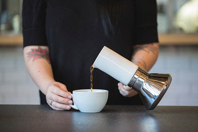 Entramos em contato com o pessoal da Blue Bottle para um bate-papo sobre o novo produto e para sanar uma questão. Qual é a diferença entre a nova e a antiga cafeteira italiana? Segundo a empresa, a base de metal distribui o calor de forma precisa e seu formato alongado em cerâmica mantém a temperatura na dose certa para uma bebida perfeita.