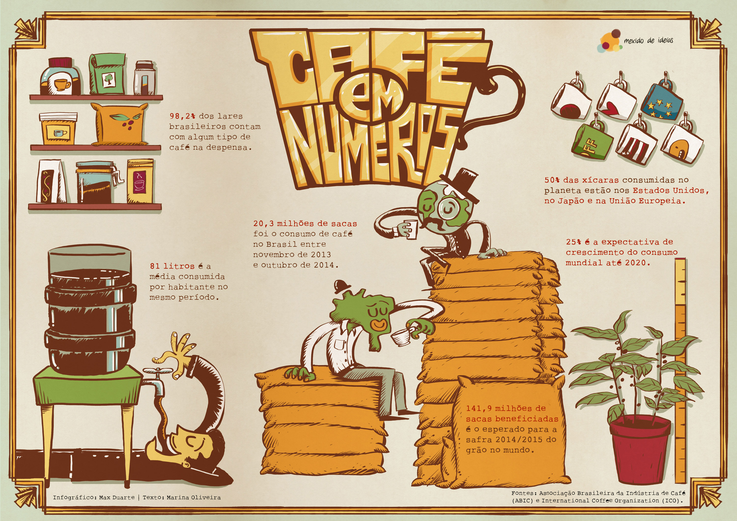 No sabor ou em sua produção, quando o assunto é café podemos falar apenas em superlativos. Os números que contam a história do consumo dessa bebida são impressionantes. Você sabia, por exemplo, que 98% dos lares brasileiros contam com pelo menos um produto derivado do grão? Seguindo esse raciocínio, nós selecionamos neste novo infográfico alguns dos dados mais interessantes do café. Mate sua curiosidade abaixo: