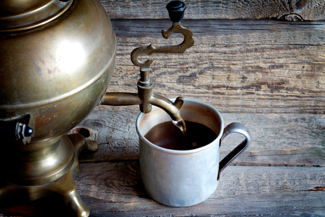 O curioso é que o país possui utensílios um tanto exclusivos para o preparo do chá. Um exemplo é o Samovar, reservatório de metal que serve para armazenar e esquentar a água. Alguns deles comportam o suficiente para 40 doses! Os russos preparavam um concentrado com o chá escolhido, que era colocado diretamente na xícara, onde recebia a água quente. O chainichat é o ato de se reunir em volta do equipamento e apreciar uma boa bebida.