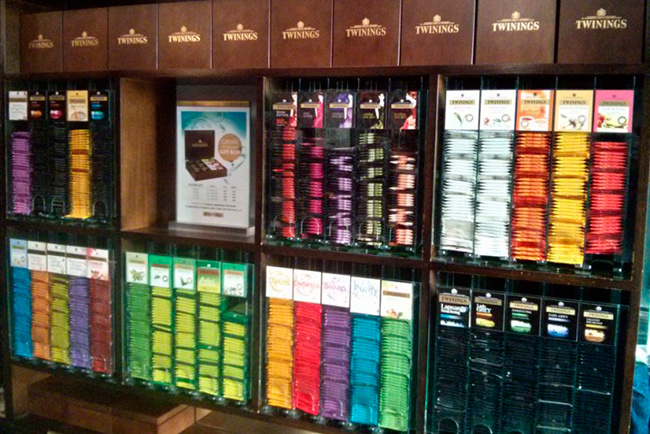 A primeira loja ainda permanece intacta no centro londrino, com o brasão da família real e seu quase inalterado slogan. Curiosamente, a Twinings foi responsável por fabricar os primeiros chás descafeinados, gelados em garrafas e até orgânicos.