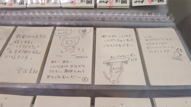 O legal é que o verso dos Onokuri Boards serve como um espaço dedicado a mensagens com boas vibrações para quem usar o cartão para retirar um café. Depois de utilizados, cada um deles é revestido com papel filme e guardado no caixa do estabelecimento como uma boa memória ou mantido pela própria pessoa se lembrar deste pequeno ato.