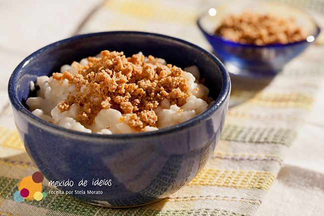 Essa receita de canjica, que os devotos devoram pelas ruas enquanto dançam e cantam, é um dos quitutes mais requisitados. Coloquei pimenta caiena, pois ela tinha uma ardência não muito identificável, mas escolha a de sua preferência.
