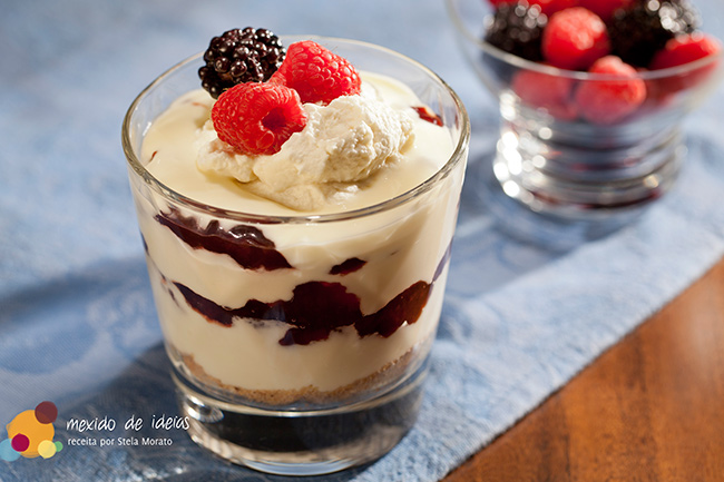Essa é uma sobremesa perfeita para usar aquelas raspas nas geleias que estão sobrando. Para os restos de bolacha também. Fiz a receita num copo, pois era como tinha visto a mãe de minha nora prepará-la. No entanto, aconselho um recipiente de fundo mais largo para ficar mais fácil alcançar todas as camadas.