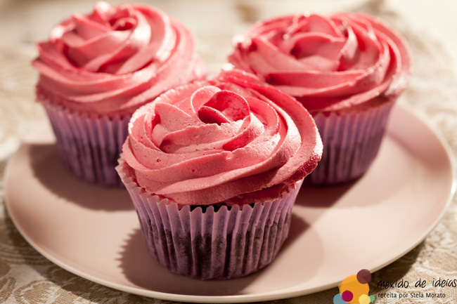 Sempre me encantei com o visual dos cupcakes em vitrines que nos remetem aos contos de fadas. Mas quase sempre o sabor é uma decepção – secos e insonsos. Este, eu garanto, é macio e molhadinho, um verdadeiro mimo para dar de presente no Dia das Mães.