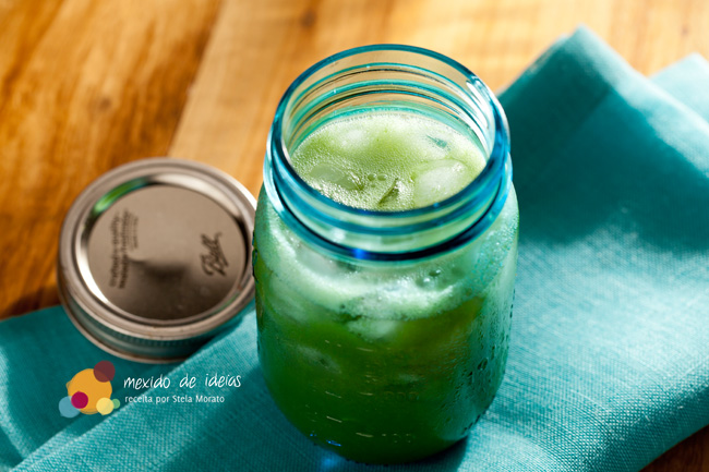 Se você colocar pedras de gelo, ele se mantém geladinho por quase duas horas. Aí é só colocar na geladeira quando chegar ao trabalho. Para fazer uma quantidade maior é só aumentar os ingredientes na mesma proporção da receita.