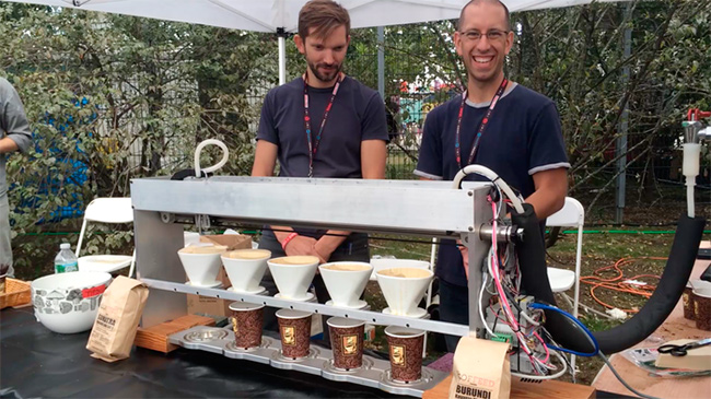 Mark Sibenac e Stuart Heys são os engenheiros nova-iorquinos que criaram o que podemos definir como uma máquina que faz o coado perfeito. Chamada de Poursteady, a engenhoca reproduz mecanicamente os movimentos e as características necessárias para fazer um bom café de coador.