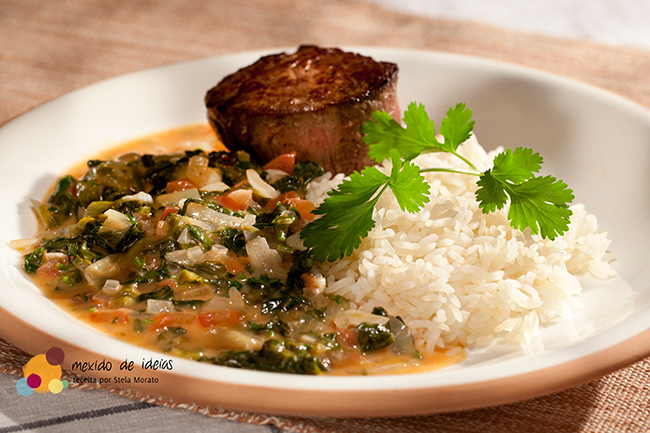 Baseei-me em uma receita típica de Pernambuco, a “bredo de coco”, para fazer essa versão com escarola. O bredo é uma verdura que quase não se encontra comercialmente nas demais regiões do país, exceto no Nordeste. Mesmo assim, é mais comercializada na época da Páscoa, na clássica receita que acompanha bacalhau. Passada a semana Santa, desaparece dos mercados.
