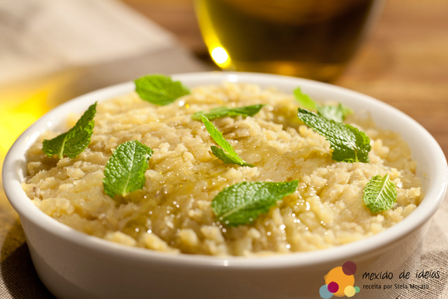 Daí lembrei-me de minha avó, sempre colocando folhas de hortelã na canja de galinha para conferir refrescância ao caldo. A receita ficou gostosa e saudável. Mas para quem não se importa com calorias a mais, use a versão com manteiga na batata amassada. E pode suar a camisa!