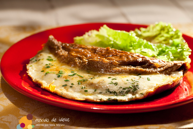 O queijo, que pode ser o de sua preferência, também constitui um complemento perfeito para essa omelete deliciosa. Costumo acompanha-la com frutas no café da manhã e saladas no almoço. No jantar, torradinhas ou biscoitinhos integrais.