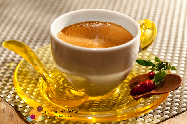 Esta receita é para isso. Esquentar o corpo um pouquinho, experimentar sabores mais picantes e quentes. Caros leitores, aqui vai minha reverência ao outono: Para preparar, tire uma cápsula do café Espresso Pleno da TRES. Depois, acrescente duas gotas de pimenta Tabasco e calda de chocolate a gosto. É só mexer bem e servir.