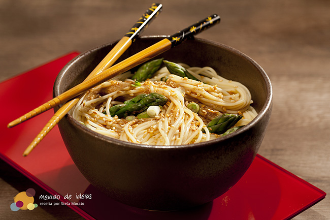 Esta salada de macarrão tem um pezinho no Japão – onde o gergelim corre solto e as massas são servidas tanto frias como quentes. Como estamos com altas temperaturas, achei que seria legal compartilhar uma receita que me acompanha há muito tempo.