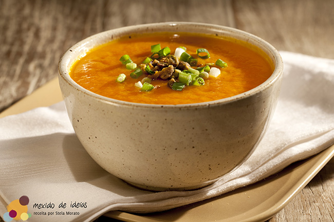 Leve a sopa congelada e a cebolinha picada (ela dura três dias em geladeira se estiver bem sequinha) ou prepare na hora. Tanto a semente de abóbora torrada quanto o pistache são duráveis – é só picar e salpicar sobre a sopa na hora de servir.