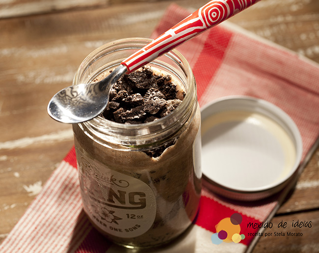 Claro que não precisa ser de uma só vez, e as quantidades dos ingredientes também são ao gosto do comensal. Eu, por exemplo, gosto de caprichar no creme de avelã, e no biscoito de chocolate.